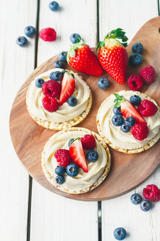 ● Bred frostingen utover maiskakene, eller bruk en sprøytepose. Dekorer med friske eller fryste bær (eller med skivet frukt).